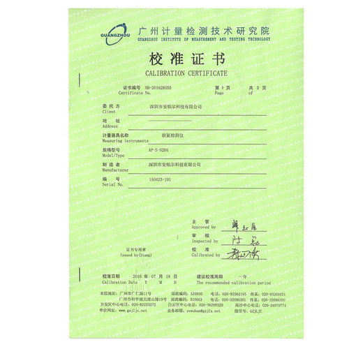 AP-S-O2 華南計量證書