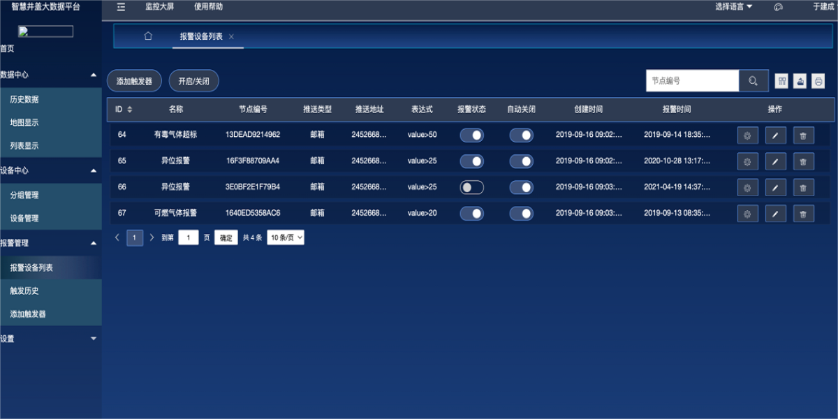 產(chǎn)品描述:智慧氣體監(jiān)測(cè)安全云平臺(tái)以設(shè)備為核心,管理設(shè)備數(shù)據(jù);支持多種設(shè)備傳輸協(xié)議,展示設(shè)備的實(shí)時(shí)數(shù)據(jù)和設(shè)備狀態(tài);可快捷靈活的設(shè)置設(shè)備告警規(guī)則,設(shè)備告警后可通過多種方式快速發(fā)送報(bào)警通知,讓用戶第一時(shí)間收到報(bào)警信息,快速做出應(yīng)對(duì);基于強(qiáng)大的數(shù)據(jù)管理,用戶可快捷方便的對(duì)本平臺(tái)的實(shí)時(shí)數(shù)據(jù),歷史數(shù)據(jù)等進(jìn)行查看和分析,也支持通過設(shè)置第三方數(shù)據(jù)推送和openApi方式進(jìn)行平臺(tái)的應(yīng)用擴(kuò)展;